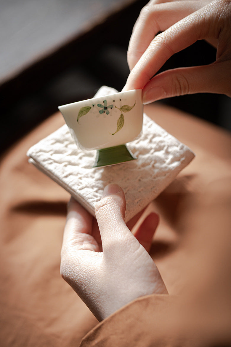This meticulously hand-painted hydrangea tea cup brings the soft elegance of blooming petals into your tea practice. Crafted entirely by hand from fine ceramic, its thin-walled construction enhances both the tactile and visual experience of each brew.