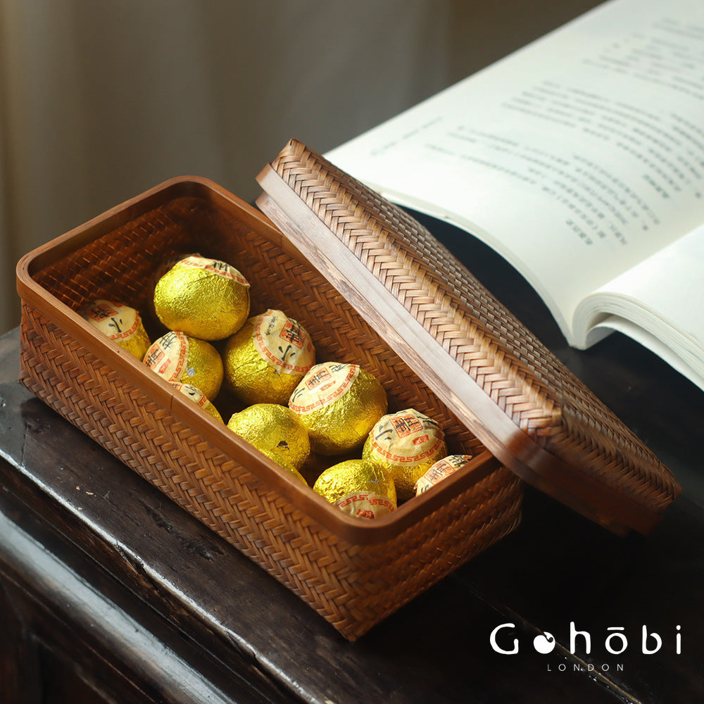 The woven bamboo structure provides strength while maintaining a lightweight feel, making it suitable for everyday storage or display. Its spacious interior allows for organising tea tools, Wenwan collectibles, jewellery or other small items, helping keep your tea table or storage area tidy and visually balanced.