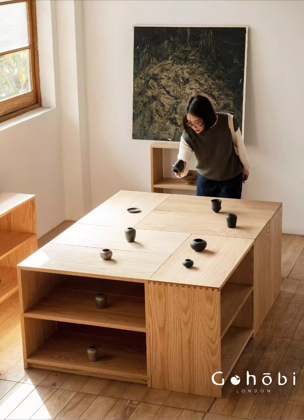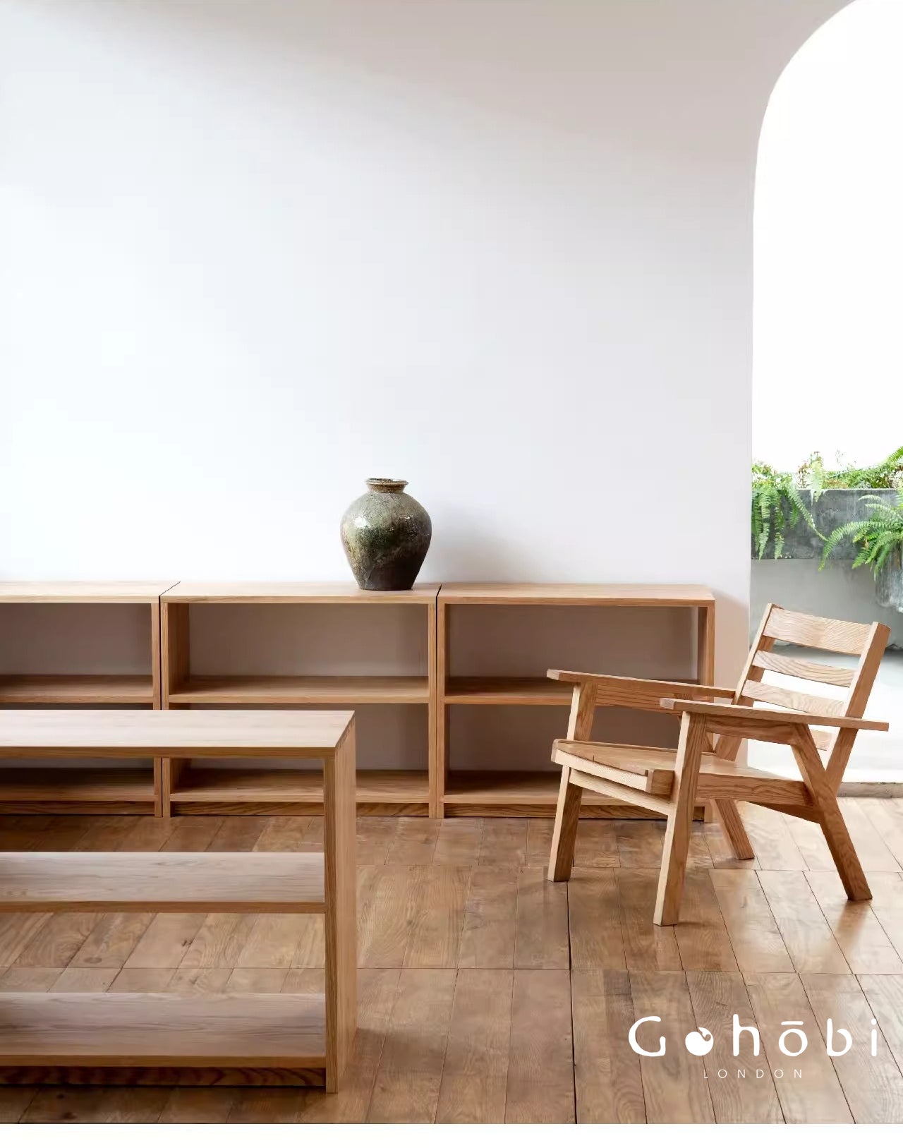 Each piece in the Gohobi furniture collection is handcrafted from carefully selected solid wood. The design embraces the warmth and authenticity of natural materials, allowing the furniture to age beautifully over time while remaining functional and timeless.