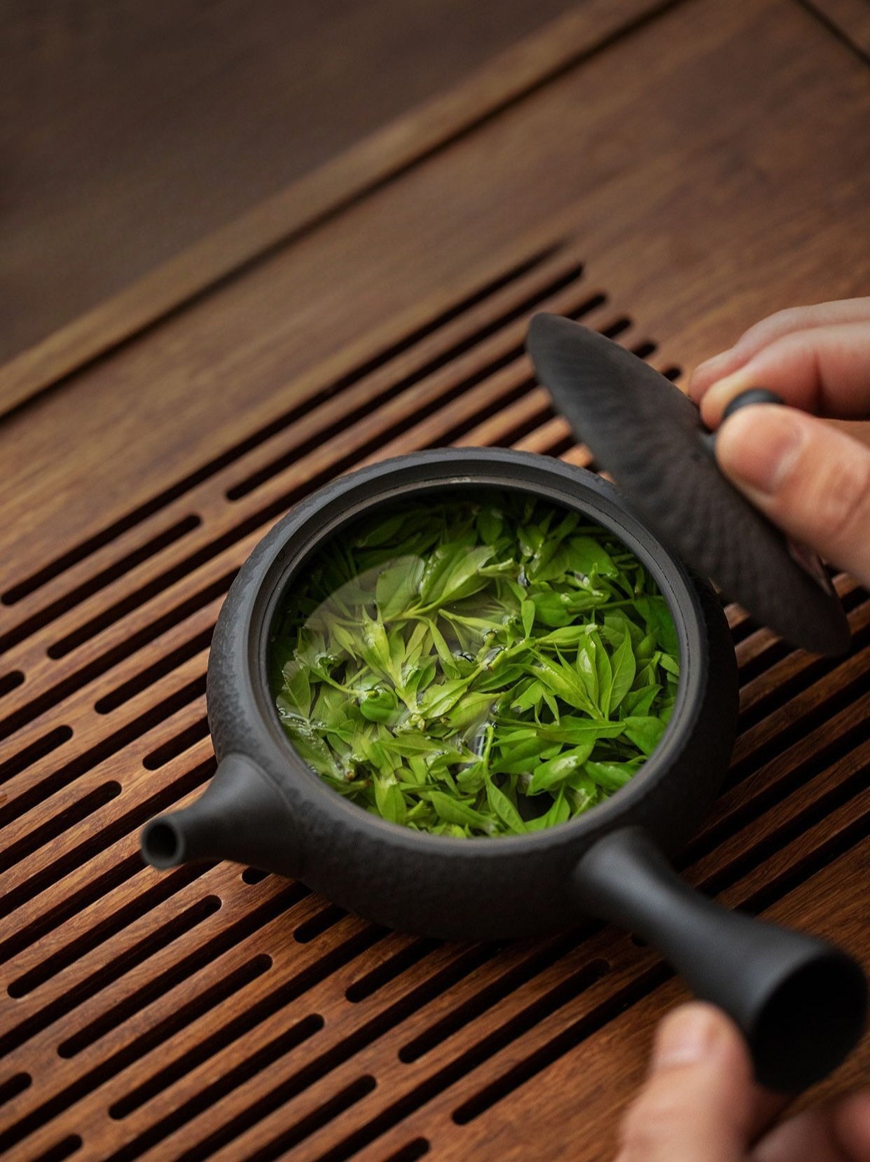 The jade-like glaze gives the teapot a calm and natural appearance, while the textured ceramic body reflects the beauty of handmade pottery. Its retro form and balanced proportions make it a charming addition to tea tables, whether used for daily tea preparation or displayed as part of a tea collection.