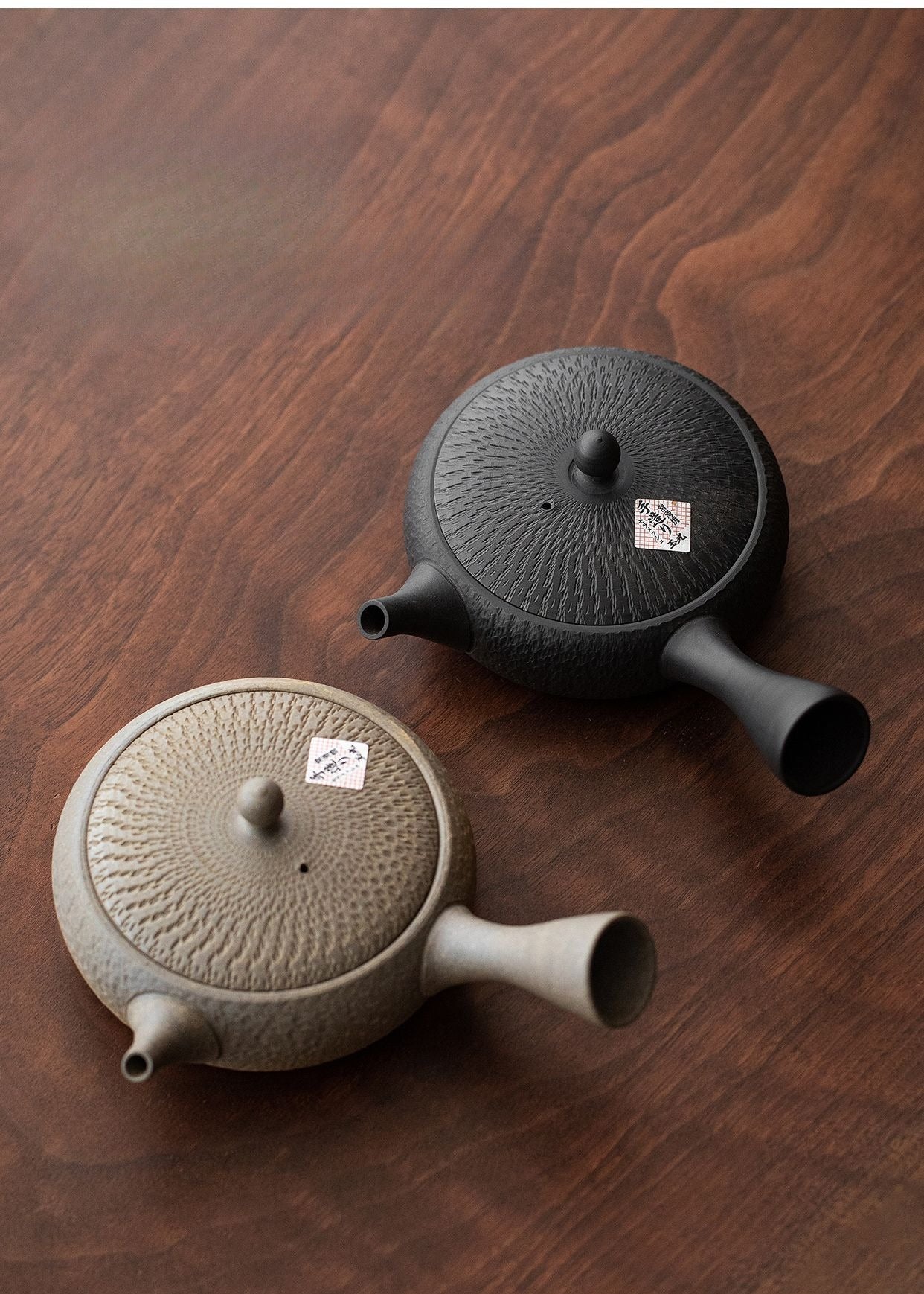 This retro style Japanese side handle teapot features a soft jade-toned glaze and a rustic coarse pottery texture inspired by traditional tea ware. Designed in the classic side handle (kyusu) style, this teapot allows for smooth and controlled pouring, making it especially suitable for brewing loose leaf teas such as green tea or oolong tea.
