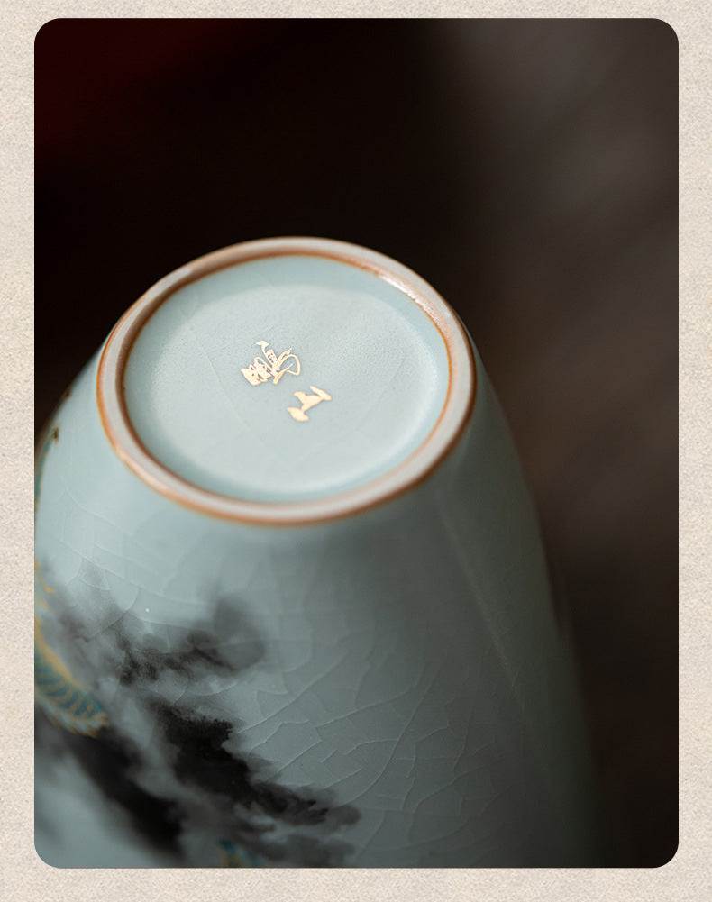 • Material: Fine Ru-style porcelain with sky-blue celadon glaze