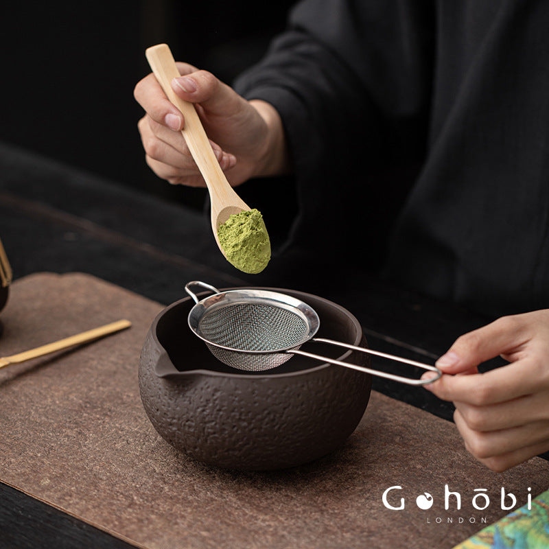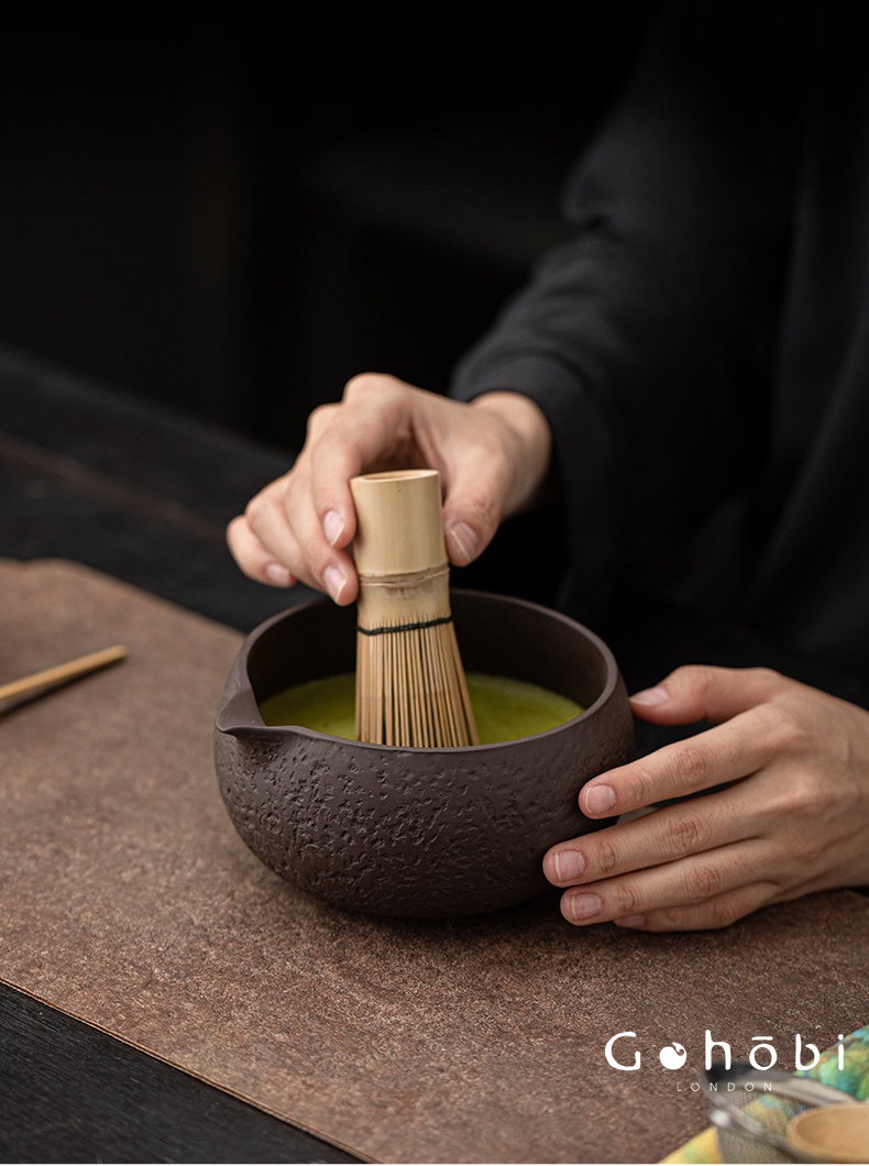 Experience traditional tea ceremonies with the Gohobi Ceramic Matcha Set 119 crafted in the style of Song Dynasty, this set includes a petal-colored tea bowl and all the tools needed for a proper tea order. Made of high-quality ceramic, it's a beautiful addition to any household.