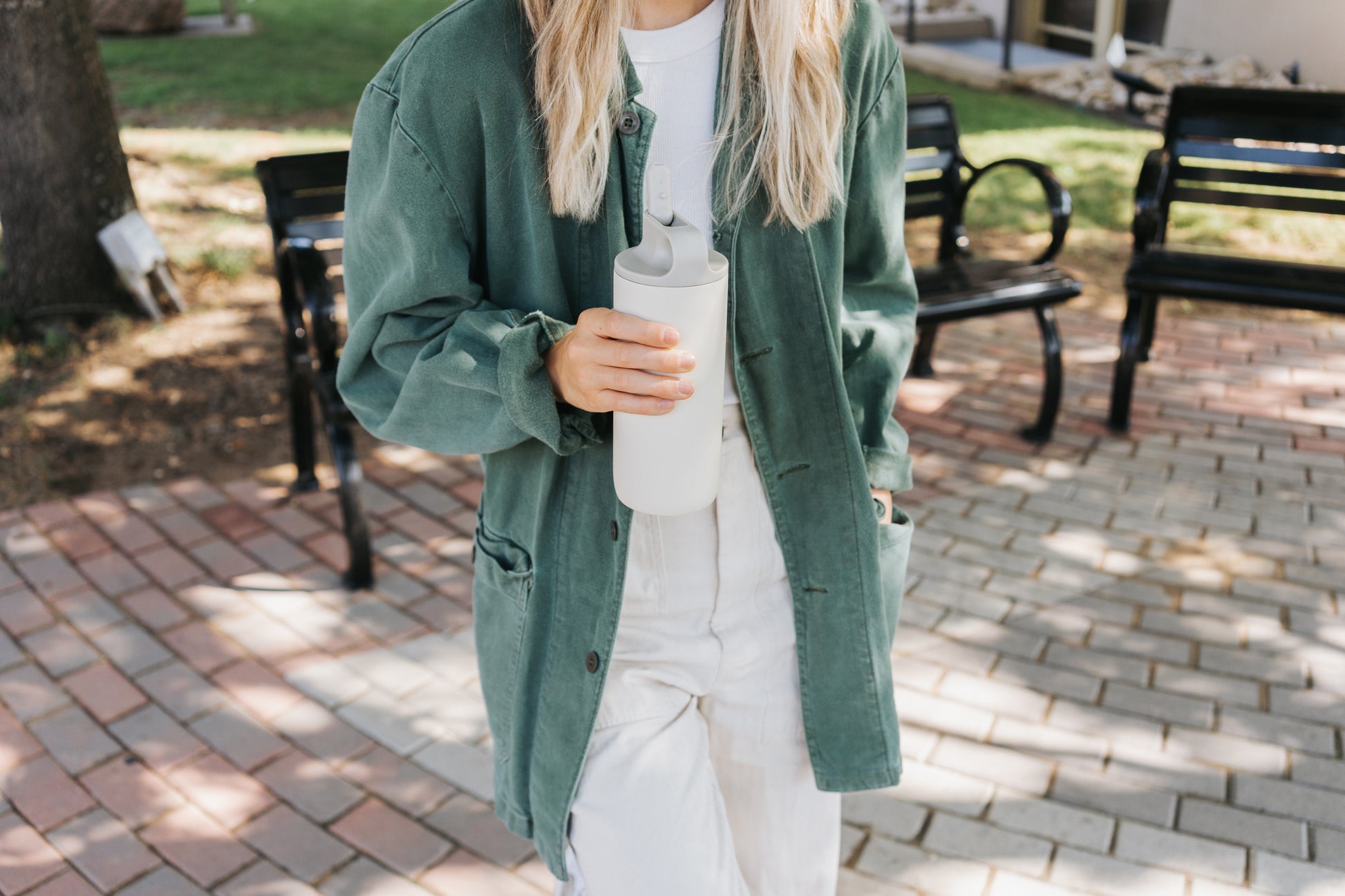 Double walled stainless steel tumbler has a vacuum between the inner and outer walls. It keeps drinks cold for 6 hours, below 6°C/43°F.