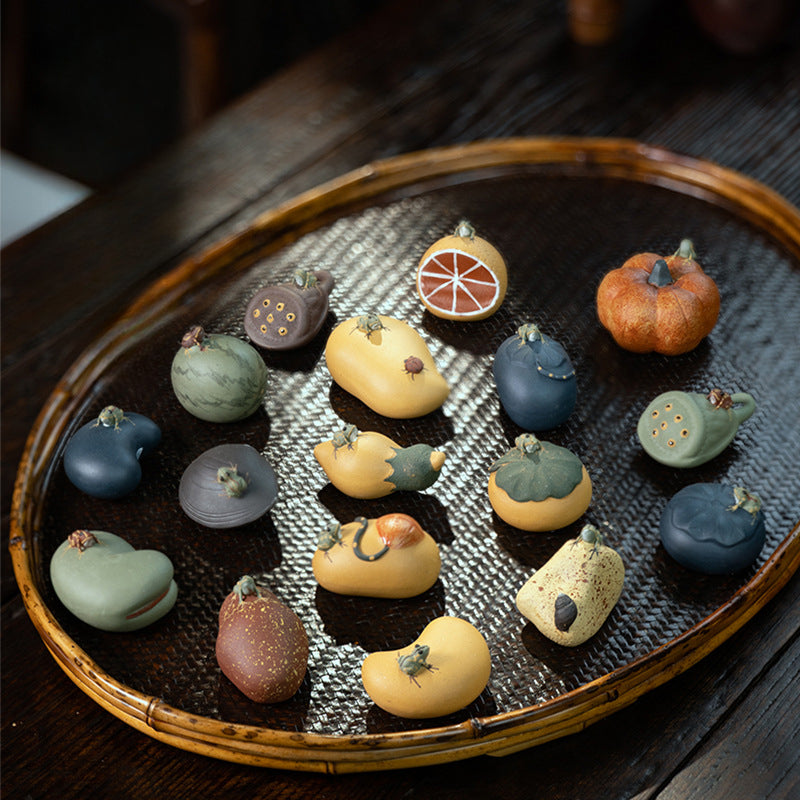 Yixing Purple Sand Spray Pastèque Thé Pet Fait Main Grenouille, Citrouille, Graines de Lotus, Citron, Fève Service à Thé, Sculpture En Gros
