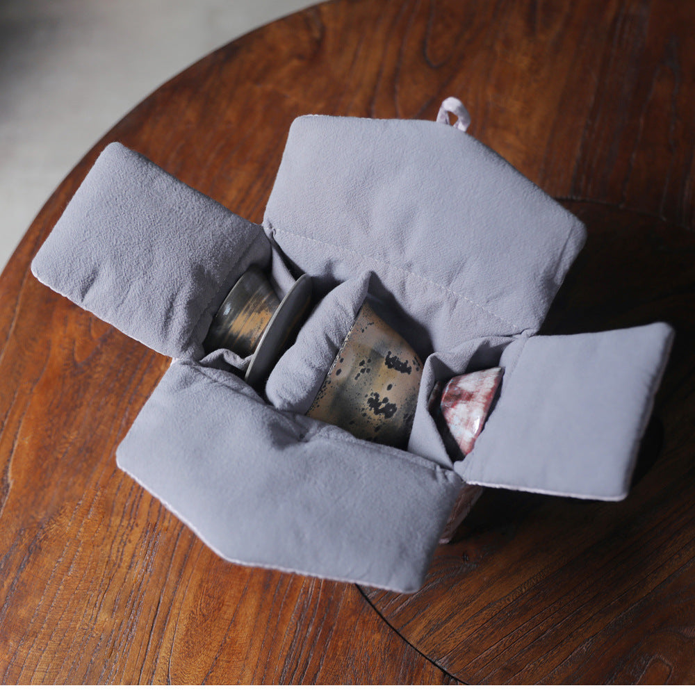Gohobi Blue and Pink Large Teaware Storage Travel Bag Shifuku
