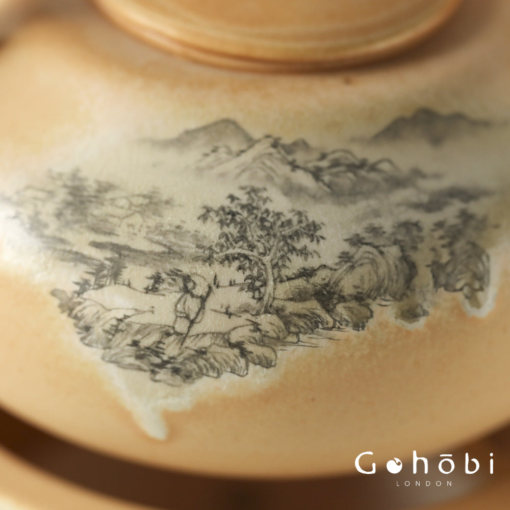 Gohobi Firewood-Style Mini Stove Teapot – Hand-Painted Landscape Charcoal Tea Pot