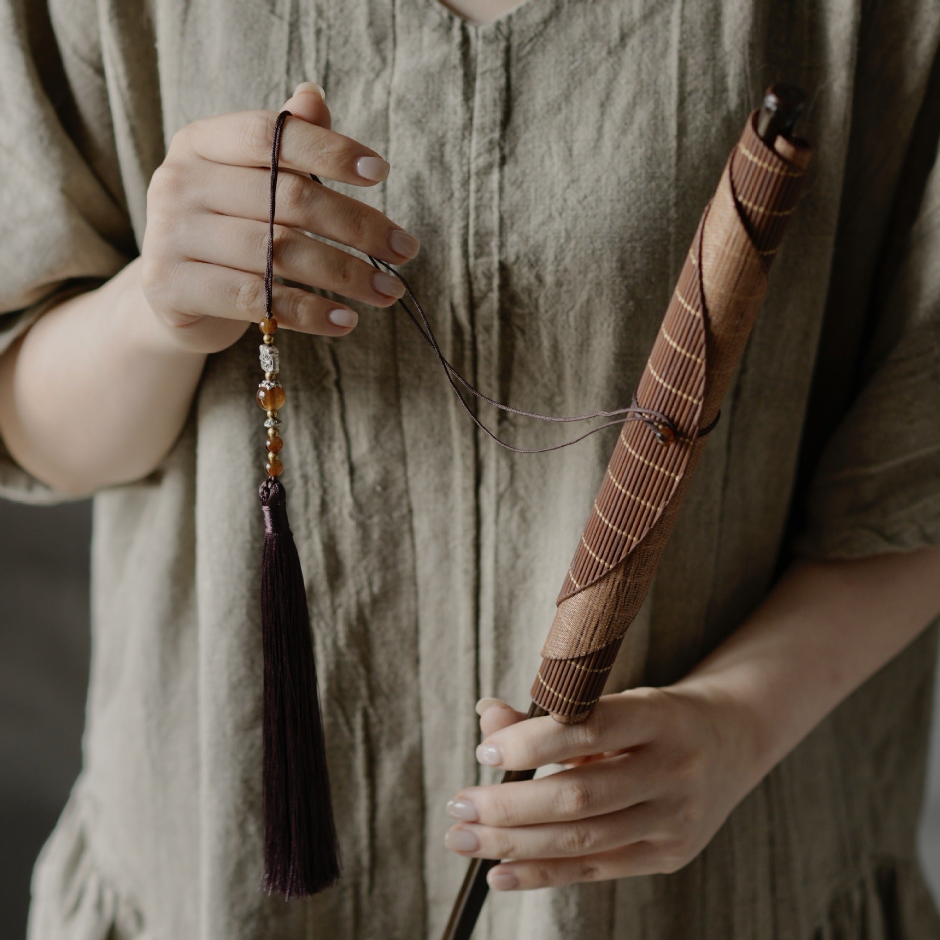 The detailed bamboo weave offers a breathable structure that gently stirs the air while showcasing a unique, hand-finished texture. Whether carried as a performance prop or used for personal cooling, this piece bridges practicality with cultural charm.