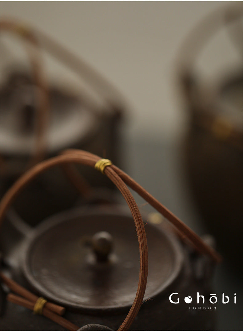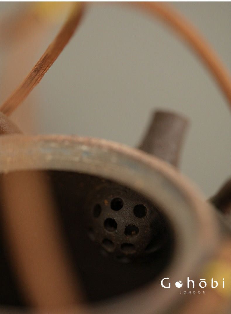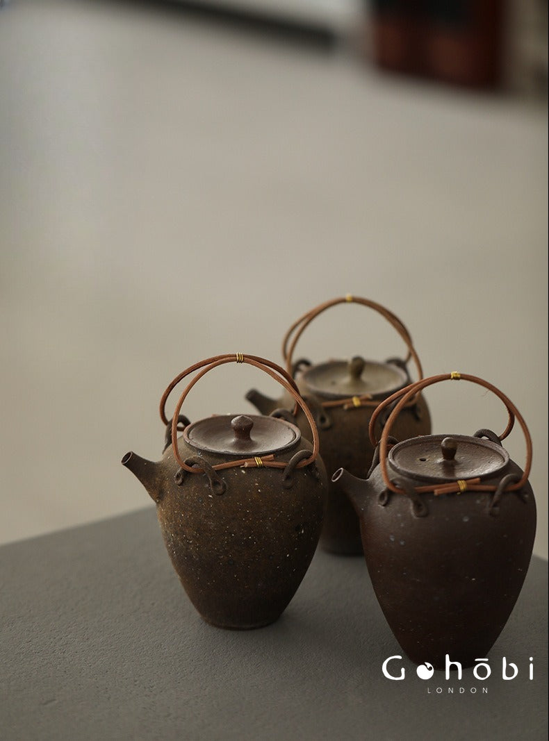 The Gohobi Old Rock Mud Boiling Teapot is a compact, heat-resistant ceramic kettle crafted from mineral-rich coarse pottery clay. Designed for simmering over a tea stove or gentle flame, this beam-lifted pot reflects the grounded strength of traditional hearthware.