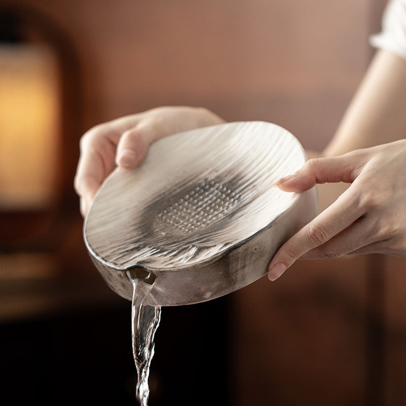 Designed with a water-storing structure, it ensures a clean and organized tea experience. Its sturdy ceramic body and retro Shino-style glaze make it not only durable but also an artistic centerpiece for any tea space. Perfect for dry brewing setups, it enhances the aesthetics of both personal tea sessions and formal gatherings.