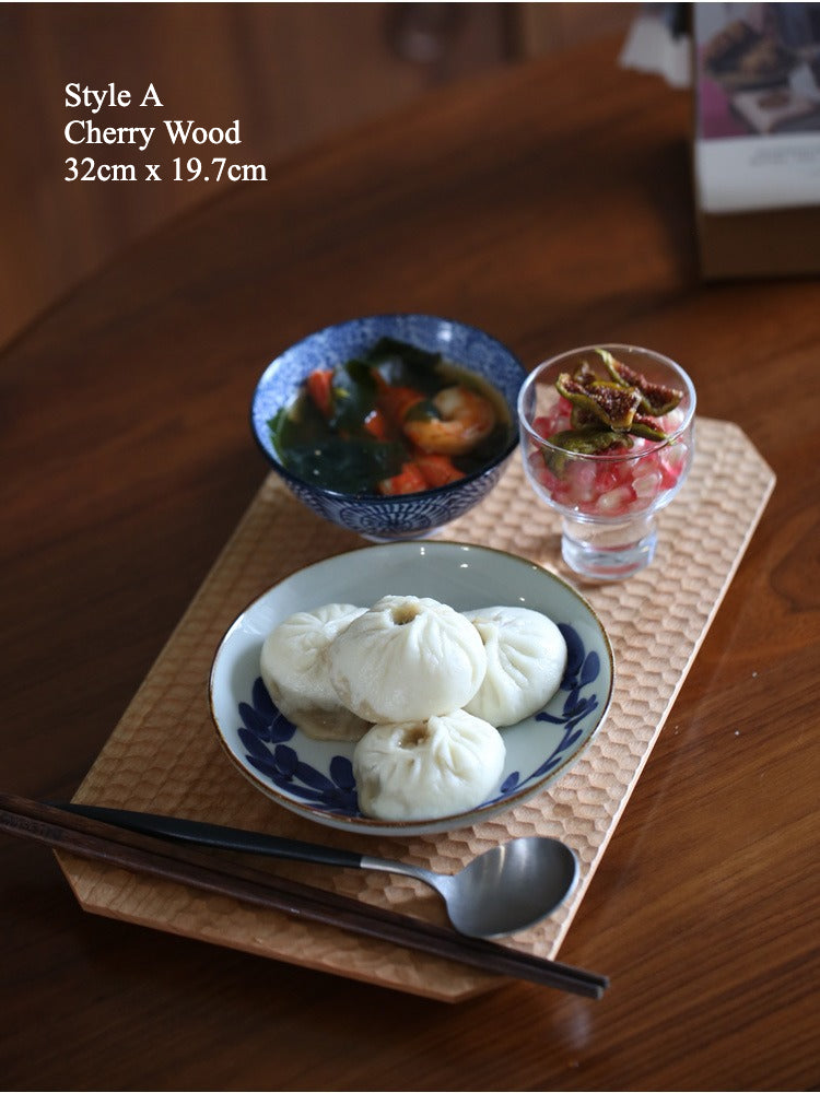 • Design: Japanese-inspired cherry wood tray with hand-carved dotted patterns
