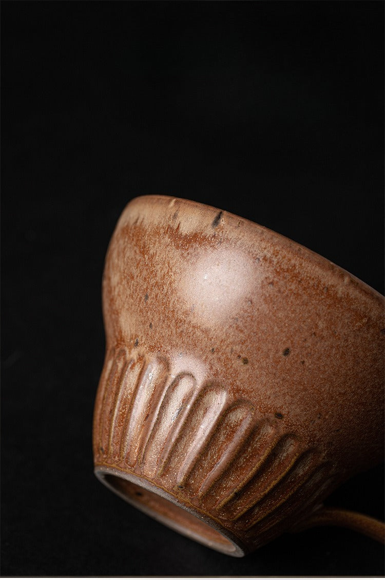 Gohobi Japanese Retro Coffee Cup and Saucer Set is a beautifully handcrafted piece that blends traditional aesthetics with modern creativity. Featuring a unique folded-waist drum shape, this set embodies rustic elegance, making it a standout for both everyday use and special occasions.