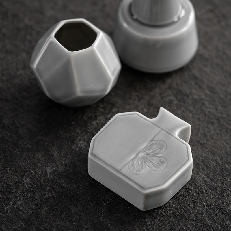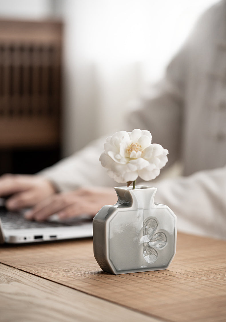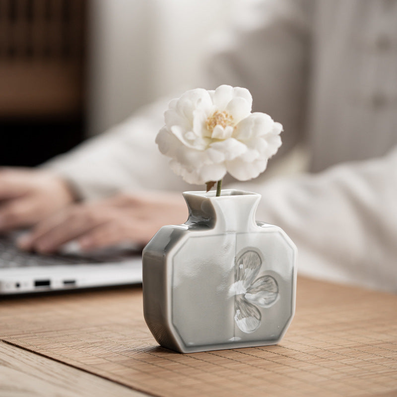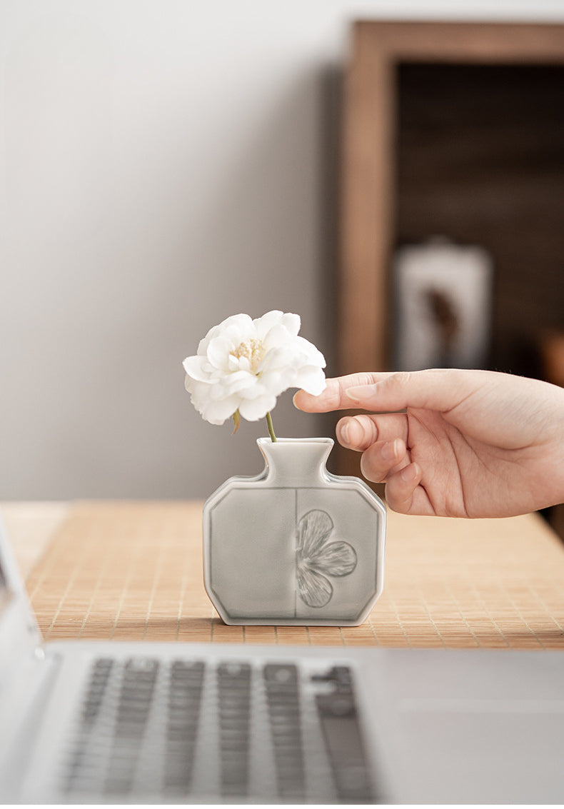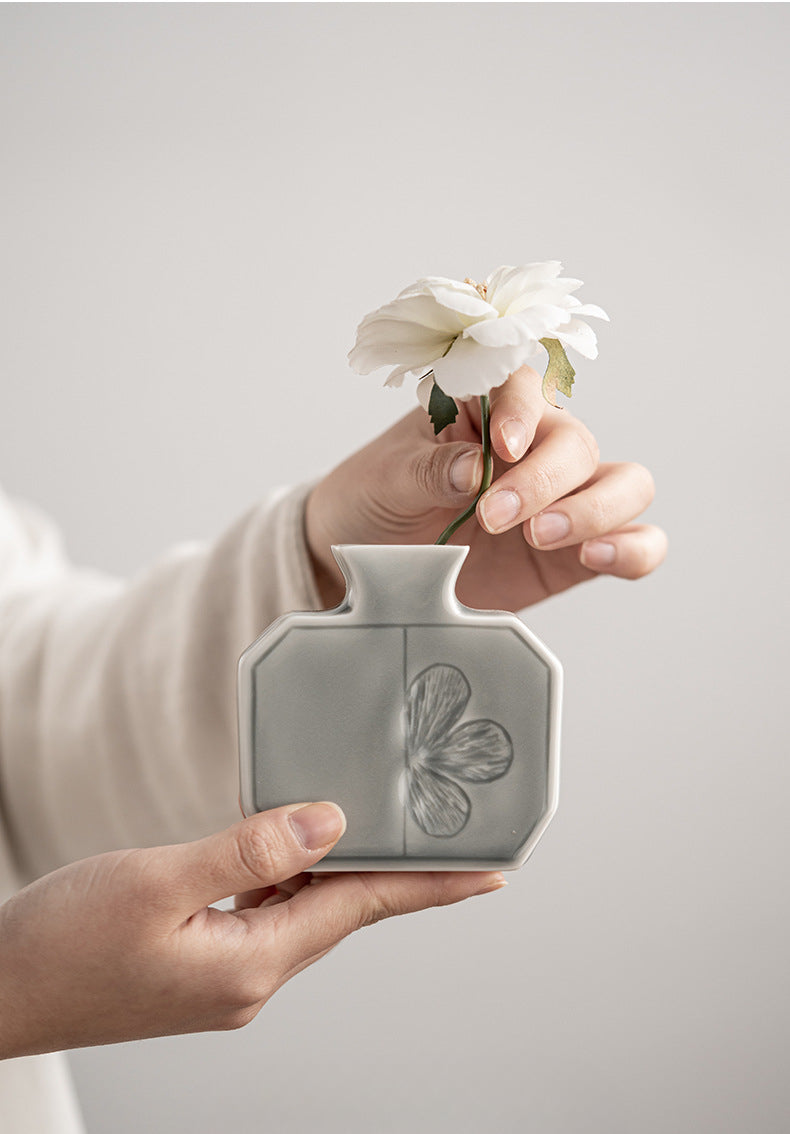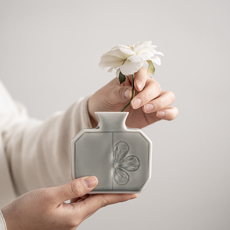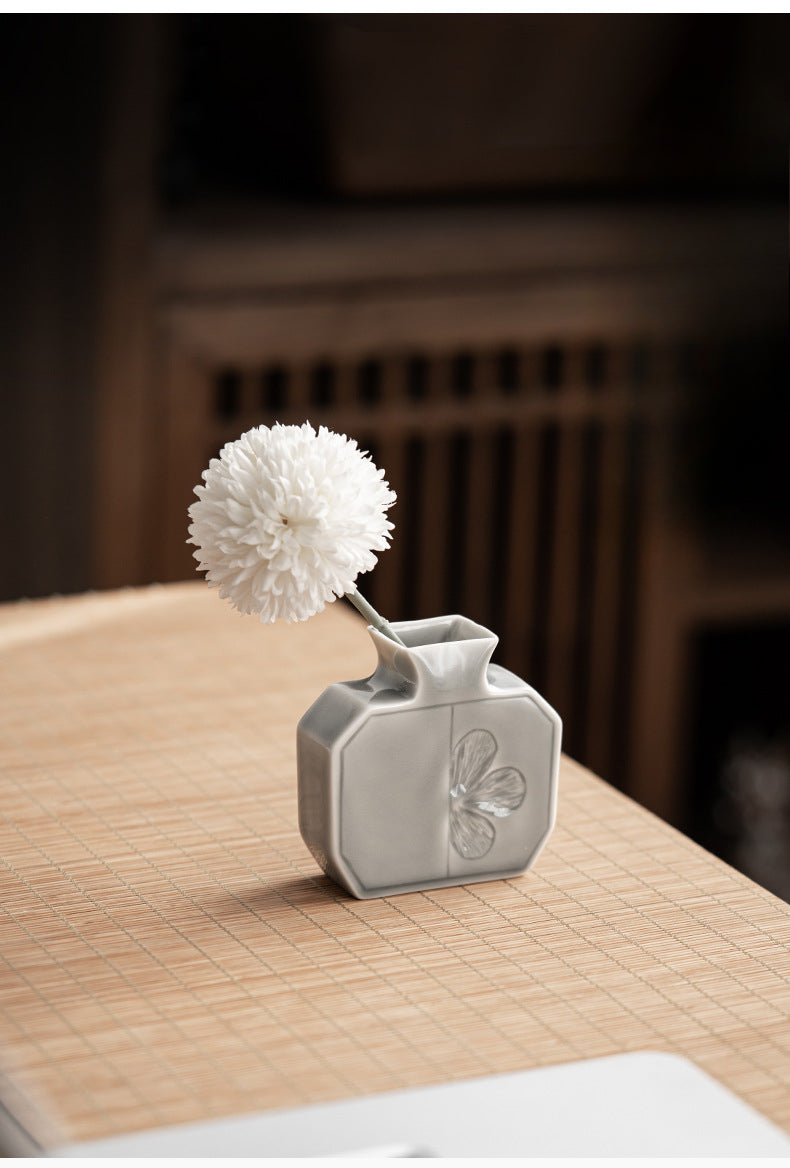 Introducing the Gohobi Japanese Style Ice Grey and Green Vase, a modern and simple ceramic vase with an ice grey glaze. Perfect for showcasing hydroponic flowers or as a decorative ornament in any home. Elevate your space with this unique and elegant piece.