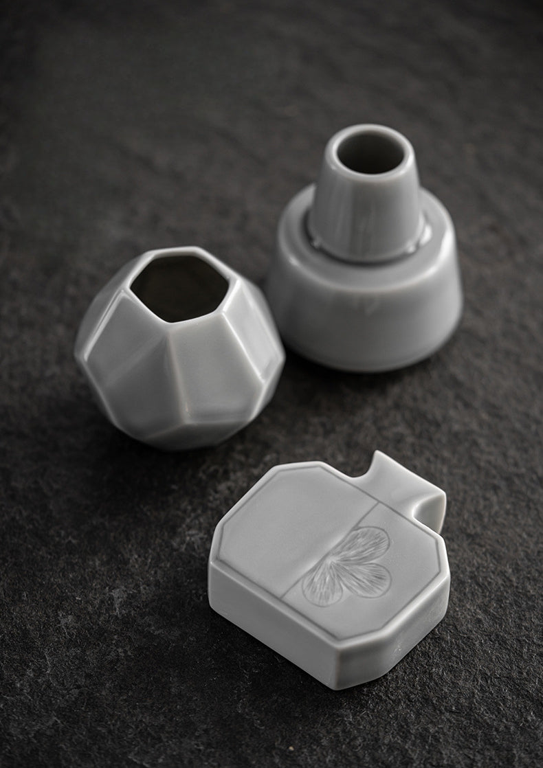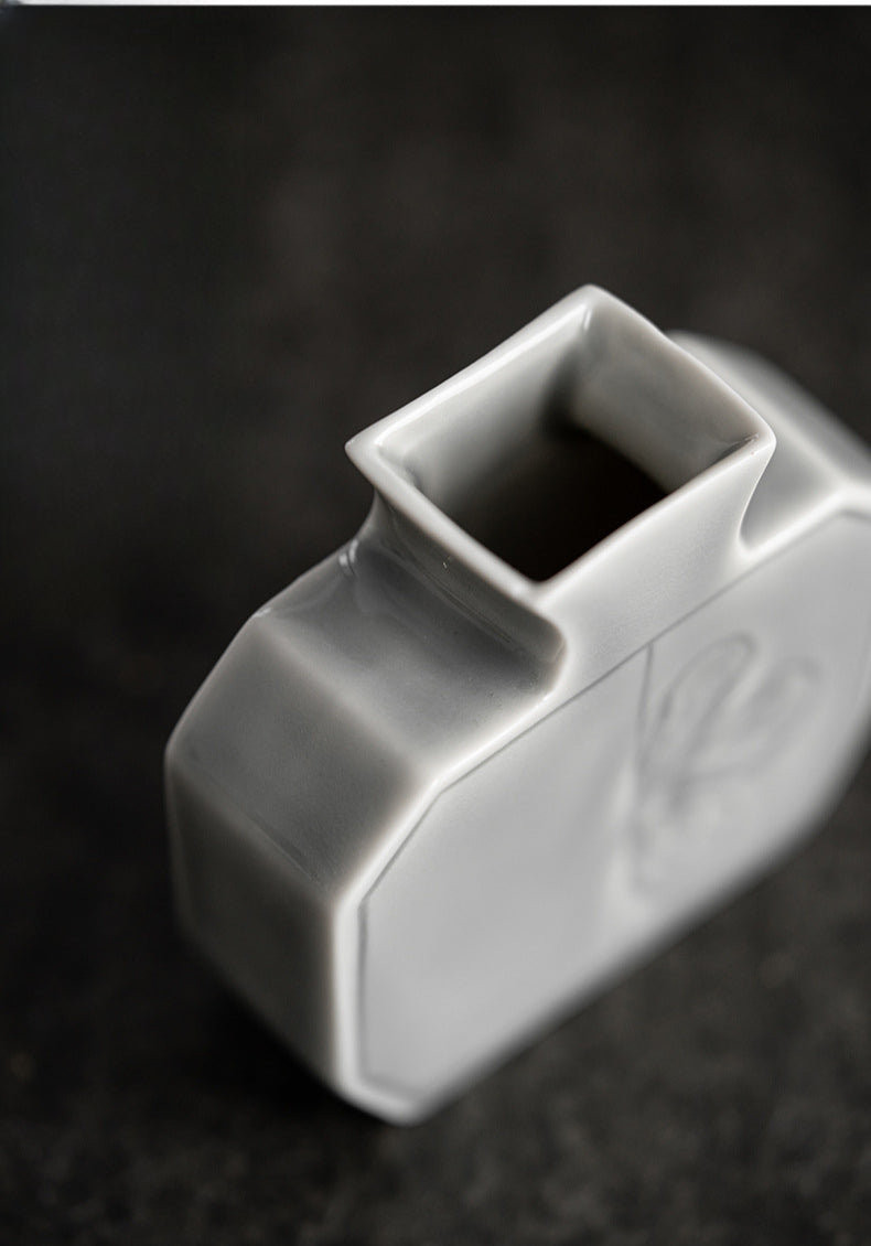 Gohobi Japanese Style Ikebana Ice Grey and Green Vase