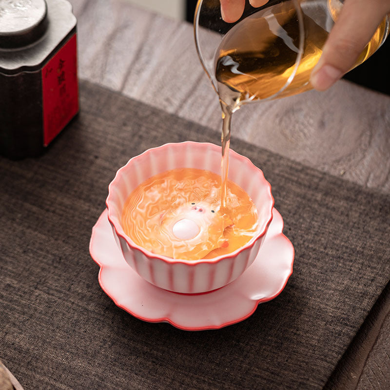 Soft, playful, and irresistibly charming, the Gohobi Lying Pig Teacup is a joyful blend of traditional Gongfu aesthetics and creative modern flair. The cup features a delicate “lard jelly pink” glaze, reminiscent of creamy tones found in classic Ruyao-style ceramics, paired with a lovable ceramic pig tea pet in a relaxed, lounging pose.