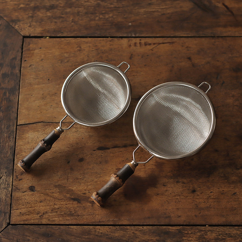 Gohobi New Purple Bamboo Handle Stainless Steel Tea Strainer