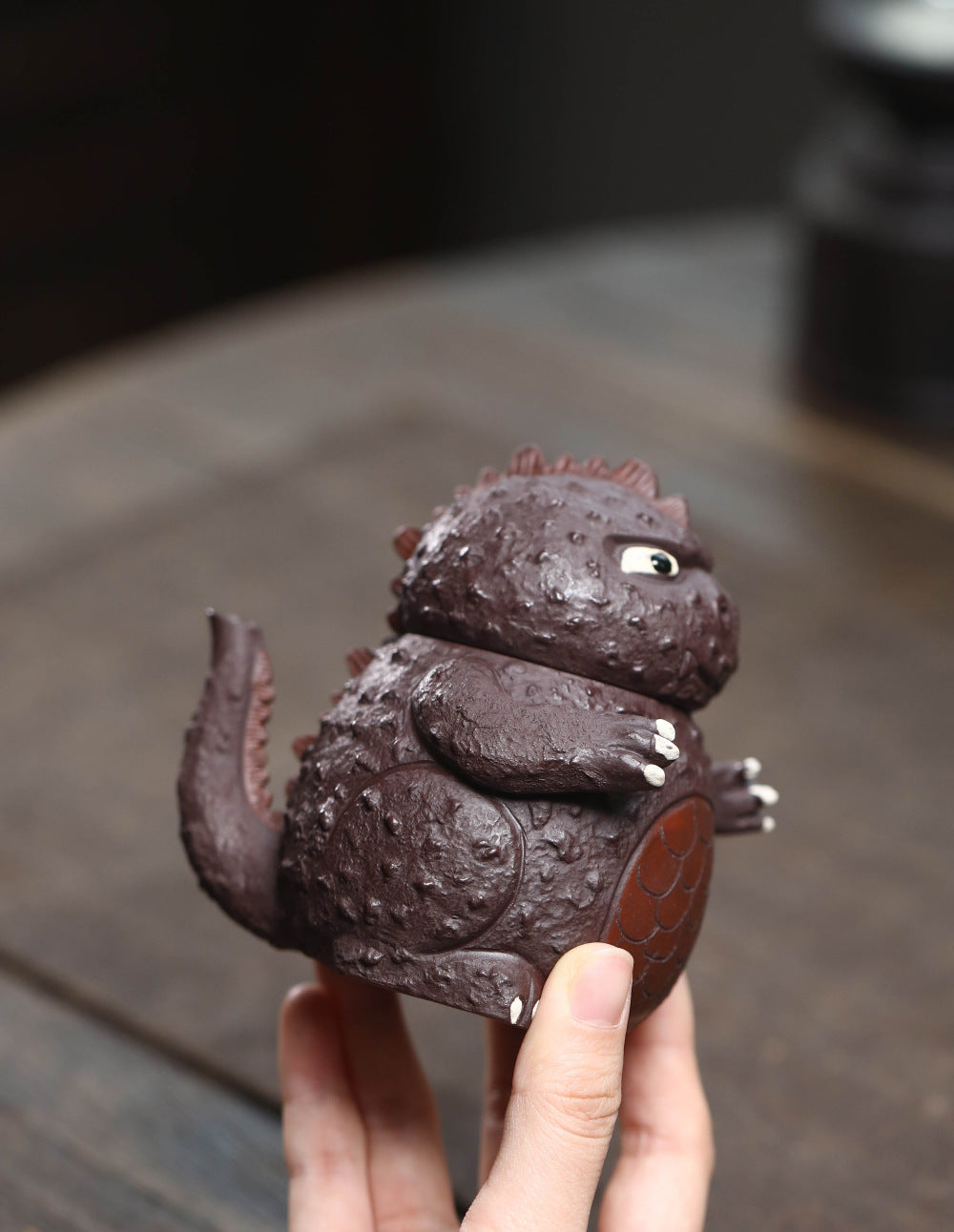 The Gohobi Raw Ore Purple Sand Hand-Held Teapot features a bionic Godzilla design, expertly crafted to provide a comfortable brewing experience without getting hot to the touch. This unique teapot serves as a fair pot for even tea distribution and doubles as a captivating cup sculpture.