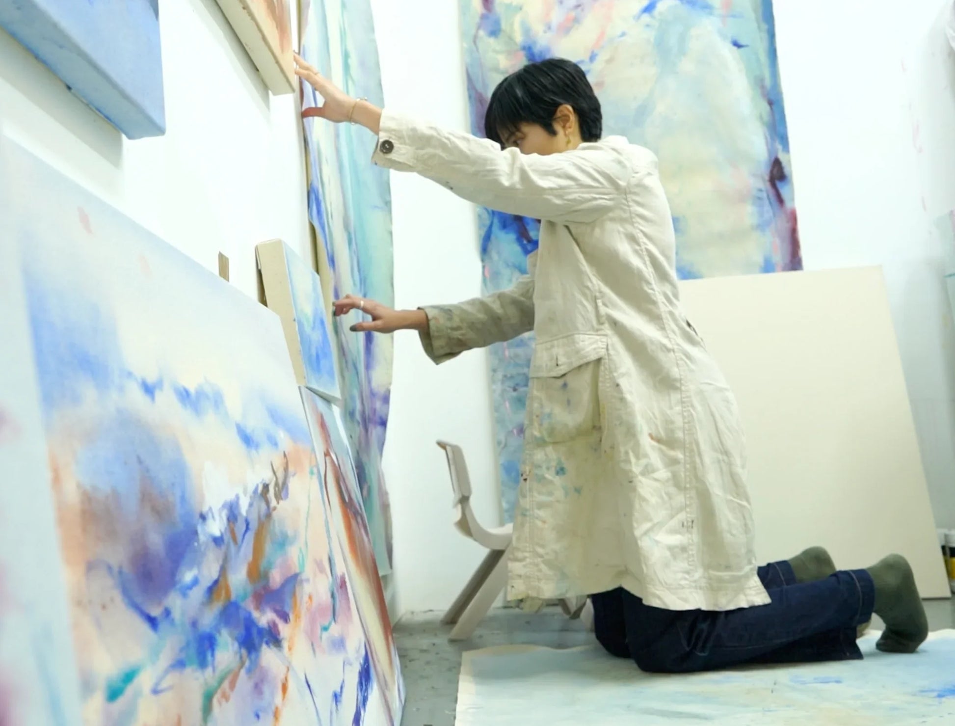 Sammi Mak is a London-based painter originally from Hong Kong. Her work transforms emotional states and sensory perception into fluid brushstrokes, open space, and layered abstraction. As a queer and neurodiverse artist, Sammi’s practice is deeply rooted in bodily sensitivity and emotional rhythm.
