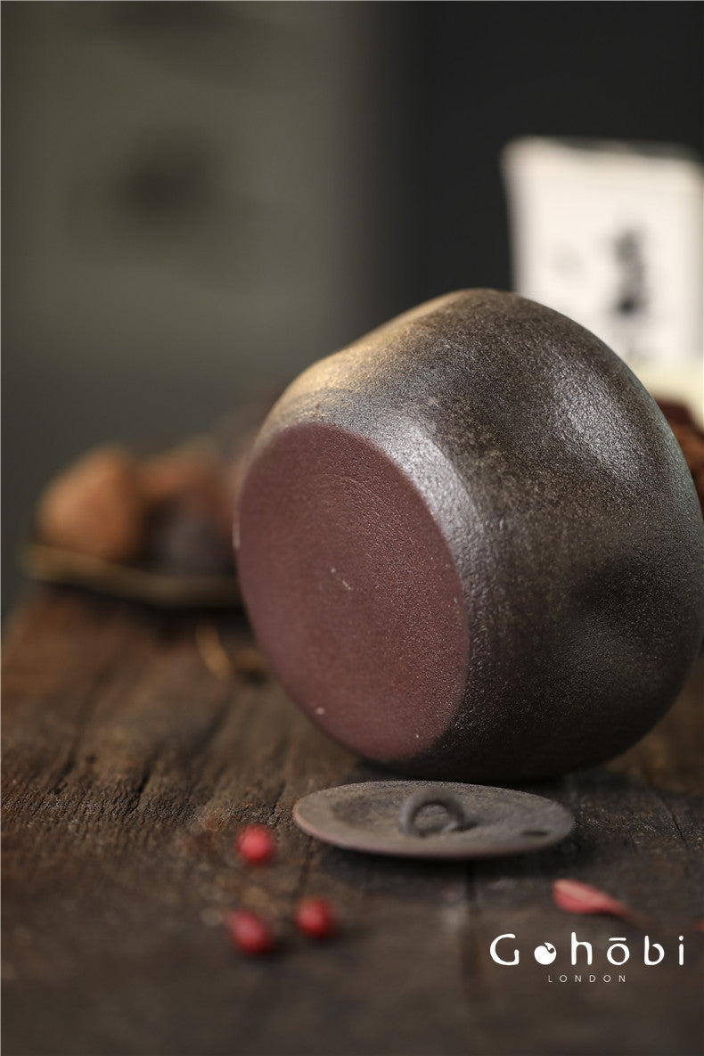 The Gohobi Nanbanyaki Fireplace Teapot is a collector-level ceramic work inspired by traditional hearth kettles and the rustic spirit of Japanese Nanbanyaki ware.