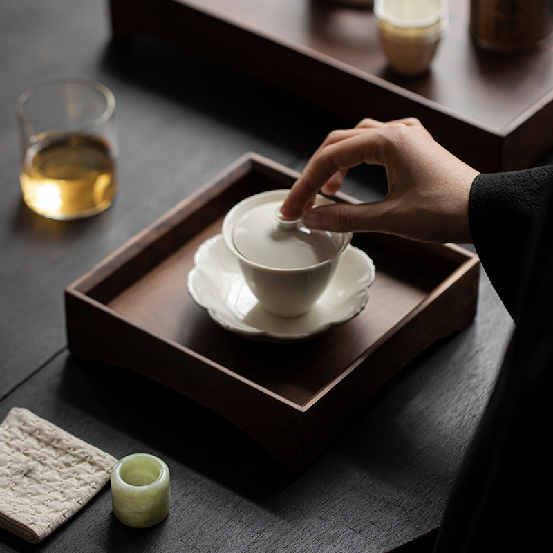 Expertly crafted from premium North American black walnut, this versatile tea tray accommodates both traditional tea ceremonies and contemporary serving needs. Designed for dry brewing methods, its solid wood construction provides stable pot support while offering elegant storage for your tea cups in a compact, space-efficient format.
