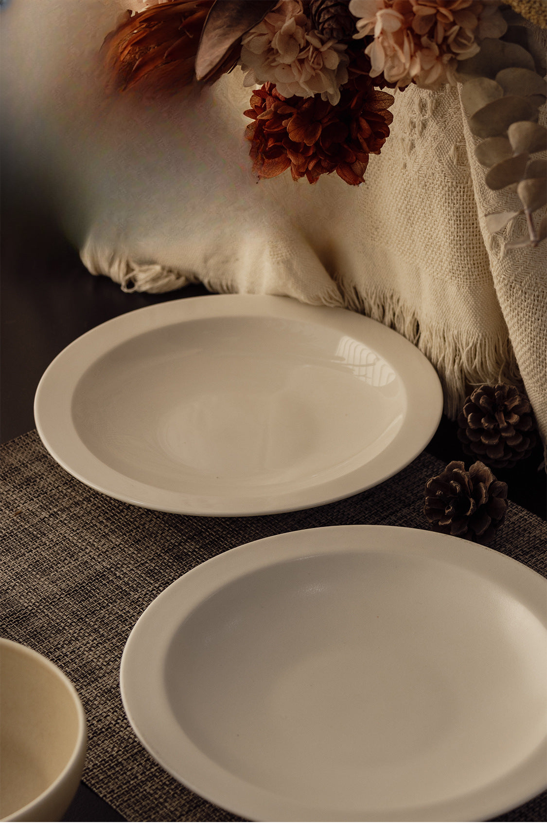 This Gohobi Painted Gold Small-Foot Flat-Edge Plate combines understated elegance with modern practicality. The flat rim design creates a sleek, contemporary profile, while the subtle footed base elevates the plate for an enhanced presentation.