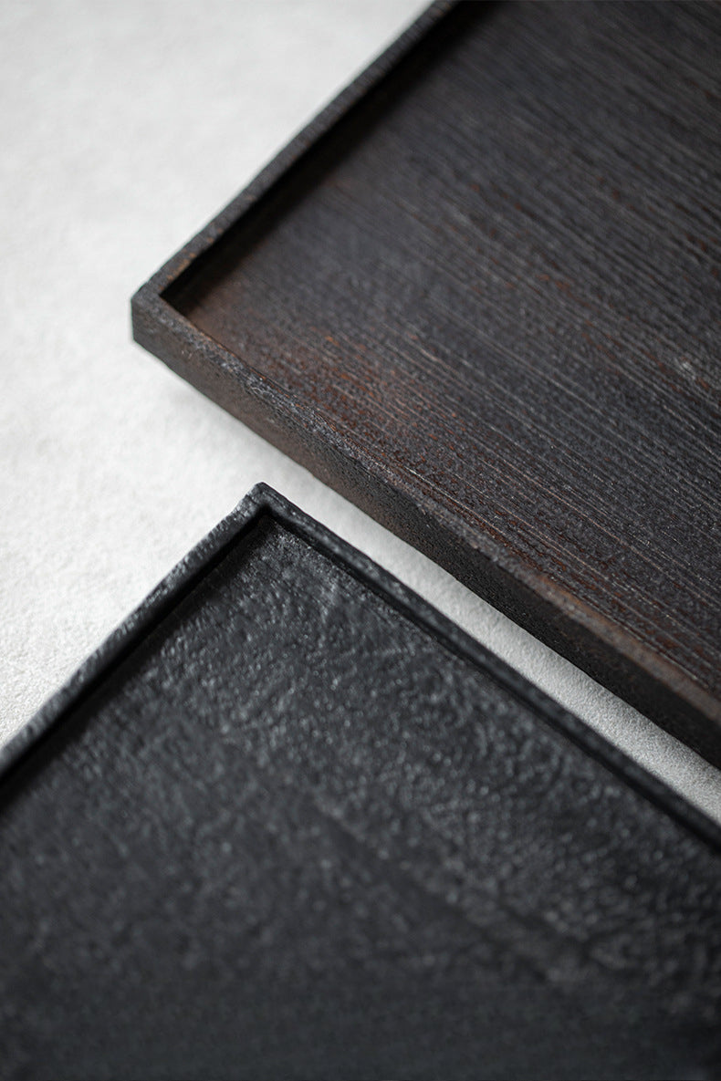 Gohobi Japanese-style Wabi-Sabi Rectangular Wooden Black Tray 005