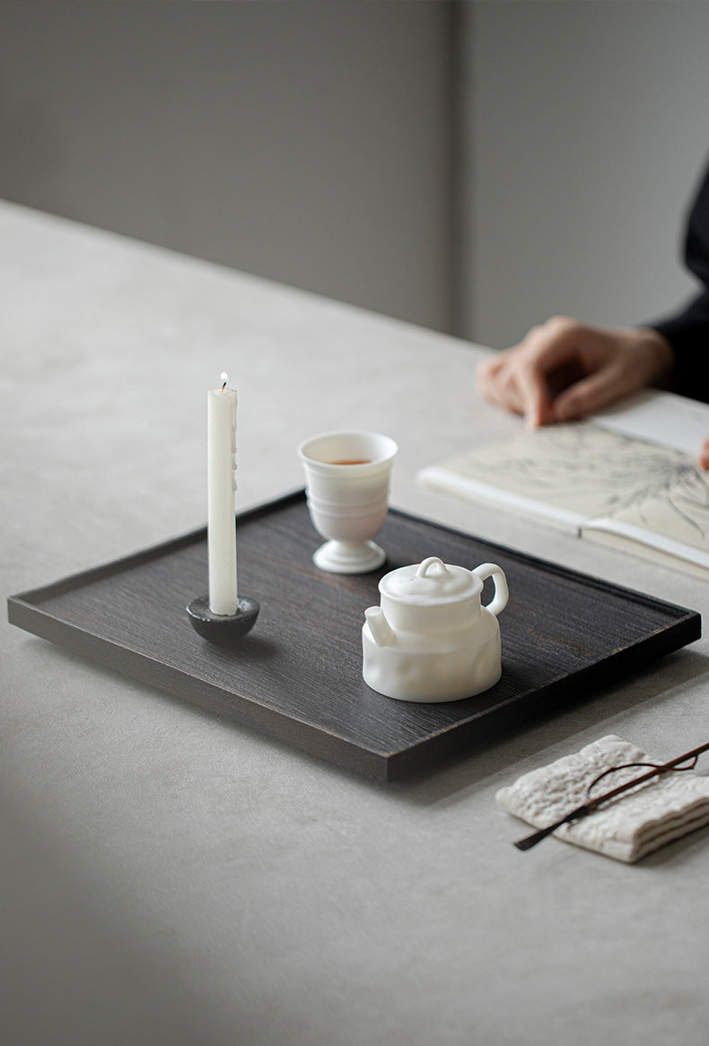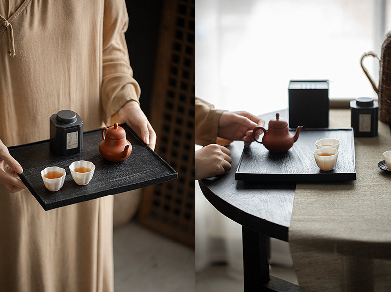 Crafted from solid teak wood, this rectangular tray embodies authentic Japanese wabi-sabi aesthetics. Designed for tea ceremonies or everyday refreshments, its minimalist form celebrates natural imperfections while providing a sturdy surface for brewing and serving. The black finish adds sophistication to any household setting while maintaining the organic character of the wood grain.